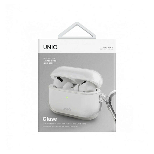 AIRPODSPRO2-GLSCLR, Чехол Uniq Glase TPU для Airpods Pro 2, с карабином, прозрачный