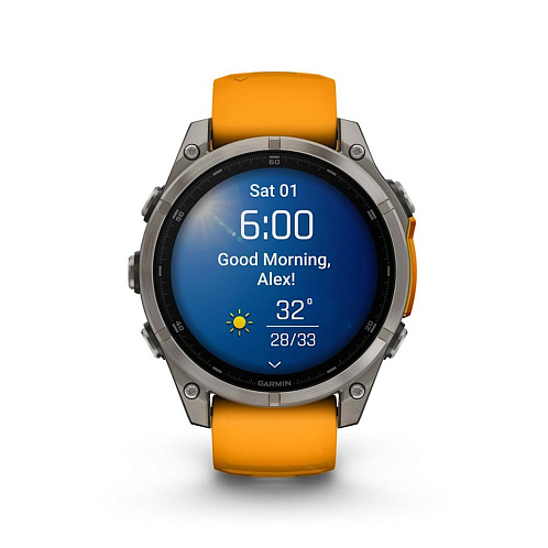 Garmin Fenix 8 — умные часы в титановом корпусе с поддержкой датчиков мониторинга здоровья, совместимы со смартфонами на ОС Android и iOS. Могут принимать звонки и сообщения. Есть функция голосового управления. С часами можно нырять в воду на глубину до 100 м.