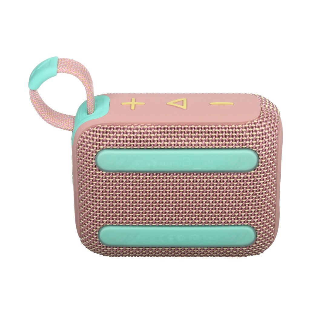JBL GO 4 выполнена в ярких и стильных цветах, вдохновлённых последними модными тенденциями. Корпус сочетает прочную ткань и прорезиненные элементы для дополнительной защиты. Благодаря эргономичной форме и удобной петле, её можно закрепить на рюкзаке, велосипеде или просто носить в руке.