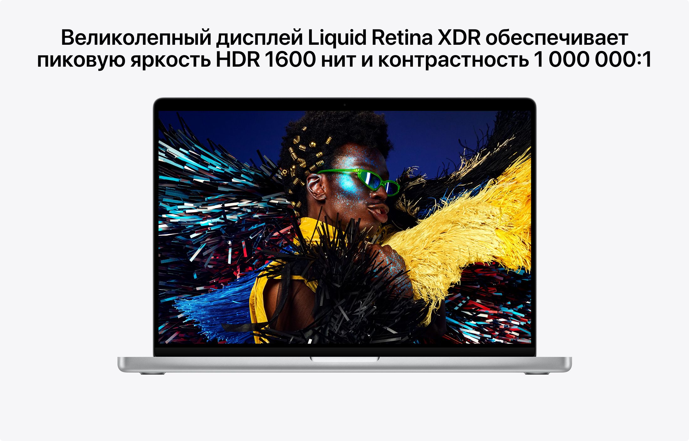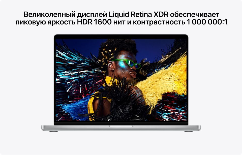 Перемещение между ярким светом и полной темнотой — без забот. Работайте в любом освещении: Liquid Retina XDR достигает 1600 нит в HDR, обеспечивает до 1000 нит для SDR при ярком освещении и опускает яркость до 1 нита для комфортной работы в темноте.